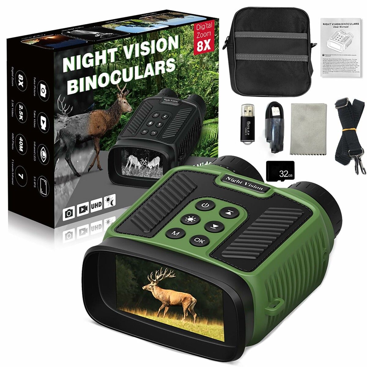4K Night Vision Binoculars IR 8X Digital Zoom Rechargeable 3inch HD Screen 40MP Photos 4K Video Infrared Full Dark View Scope Color Green