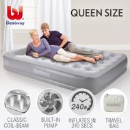 Bestway Queen Inflatable Flocked Mattress Bed Buil...