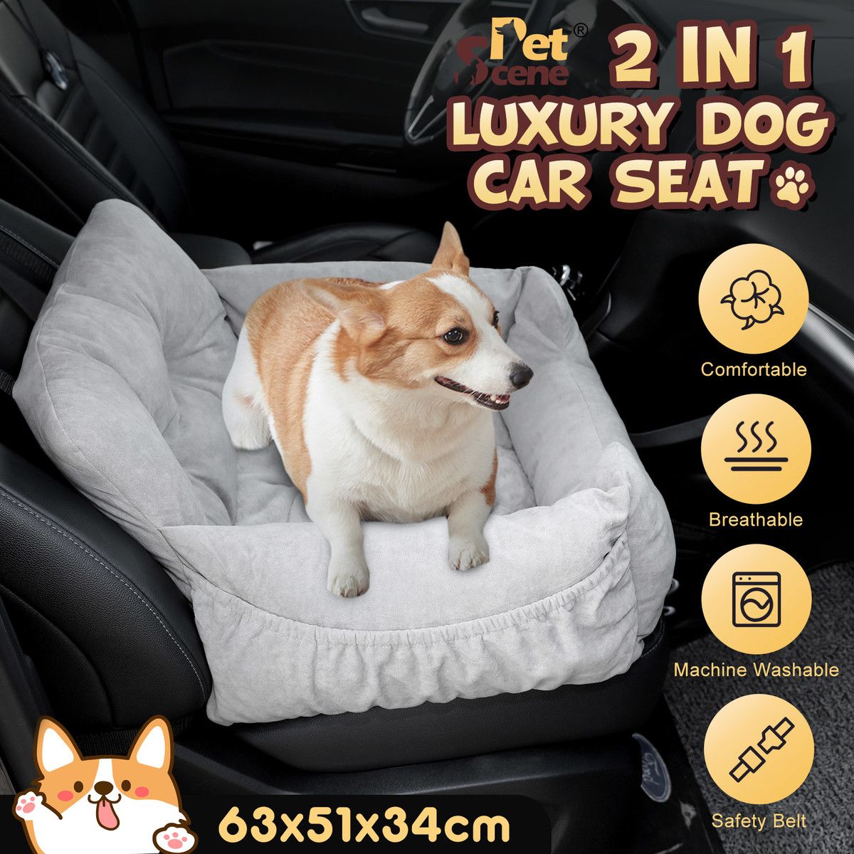 Dog Cat Pet Bed Sofa Car Seat Calming Doggy Canine Carrier Booster Chair Mattress Protector Puppy Couch Bedding Warming Lounge Travel Cushion Portable with Safety Straps
