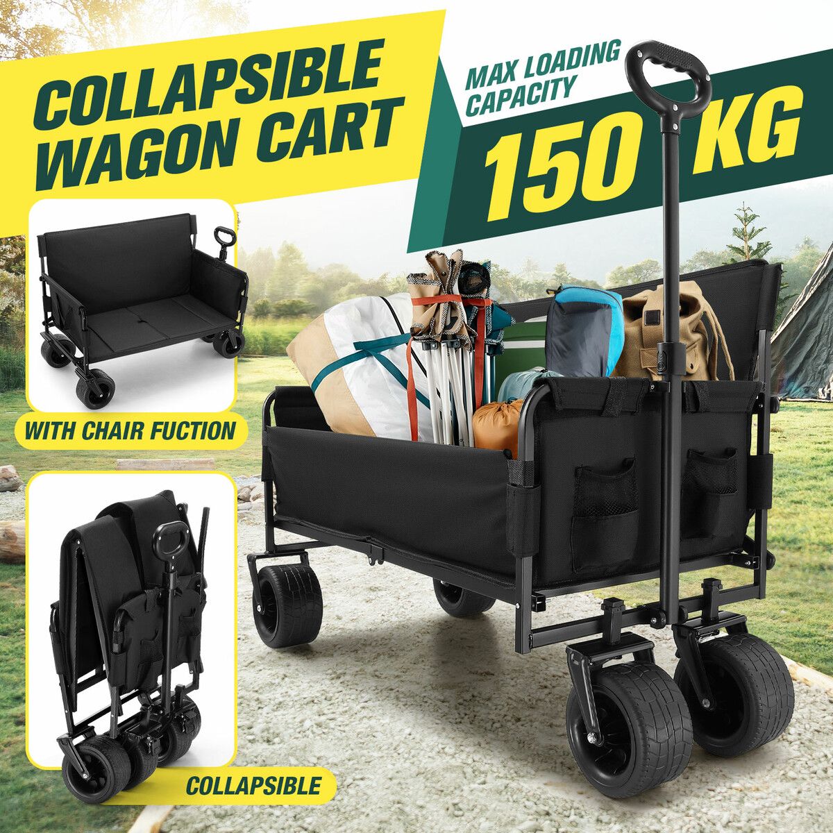 Foldable Beach Trolley Wagon Cart Utility Trailer Garden Outdoor Picnic Camping Shopping Luggage Sports Market Barrow Grocery Collapsible Wheels 150kg