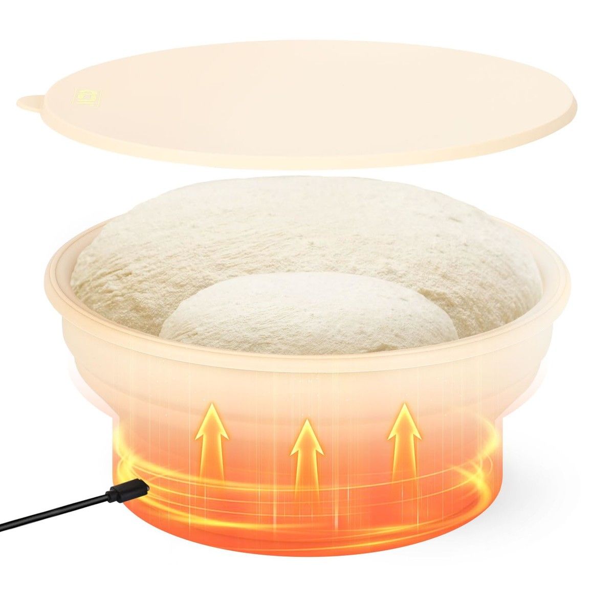 Heated Banneton Bread Proofing Basket 9 Inch Foldable Silicone Sourdough Fermentation Bowl 4 Adjustable Temperature LevelsType C Power Bakery