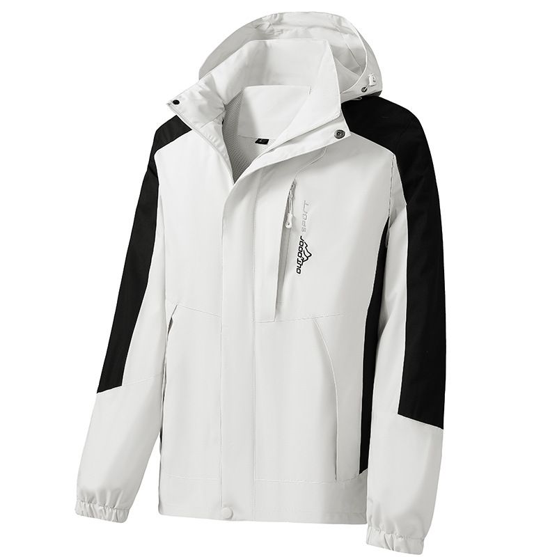 Men Block Hooded Outdoor Single Layer Sport Windbreaker Jacket Color White Size 2XL