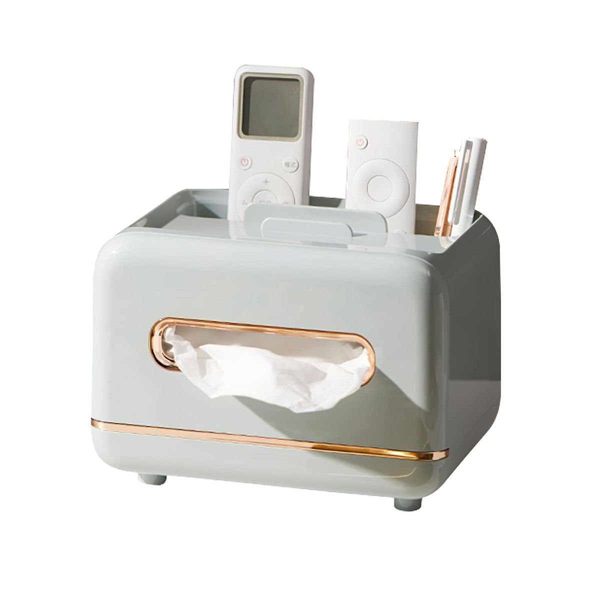 Multifunctional Tissue Storage Box Vanity Countertop Small Size Organizer for Paper Remotes Phone Glasses Etc-Light Green