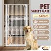 Safety Gate Pet Dog Cat Security Extra Tall Retractable Fence Enclosure Guard Kitchen Doorway Stairs Barrier with Walk Through Door 142cm Height