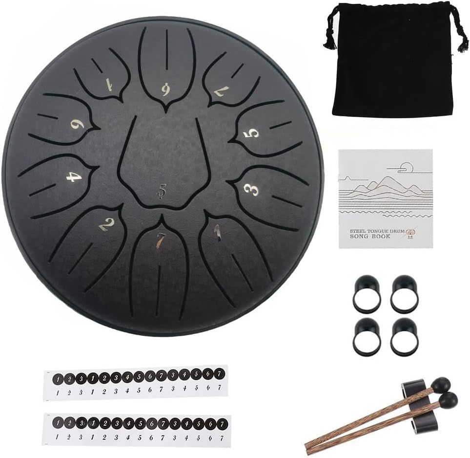 Steel Tongue Drum Percussion, 6 Inch 11 Notes Musical Instruments, Music Gifts for Family Friends (Black)