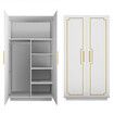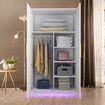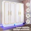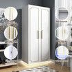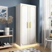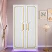 White Wardrobe LED Clothes Storage Cabinet Closet 2 Doors Armoire Cupboard Wooden Bedroom Furniture Bedding Organiser Shelf Coat Rail 80x50x180cm